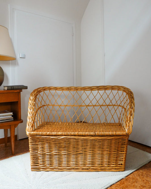 Bientôt disponibleBanquette coffre en osier couleur miel