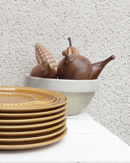Lot de 6 assiettes à fondue en céramique majolique, coloris ocre camel