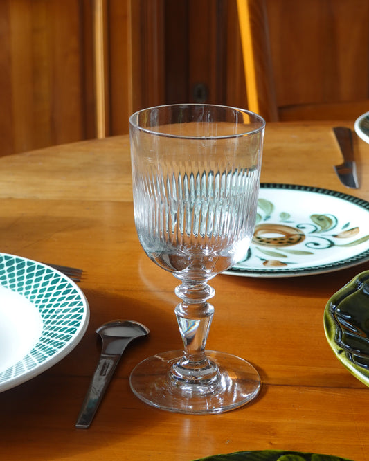 Lot de 4 verres à vin anciens, verre ciselé, pied balustre, style vintage