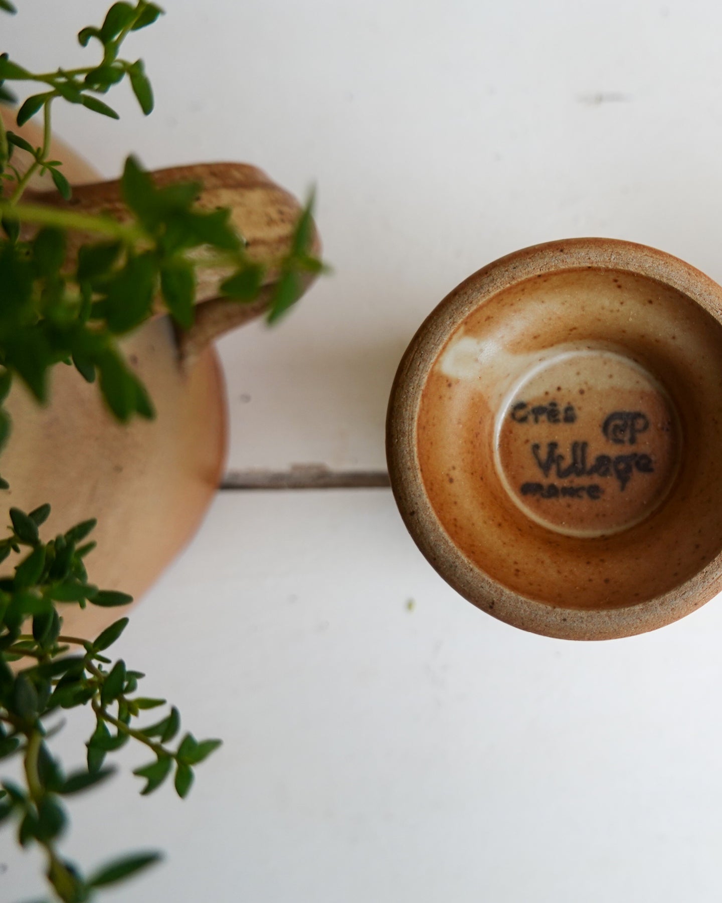 Ensemble de 4 mazagrans en grès émaillé, réalisés par la manufacture CNP Village, emblématique du savoir-faire artisanal français. Ces pièces datent des années 60-70 et incarnent parfaitement l’esthétique rustique et authentique de cette époque.